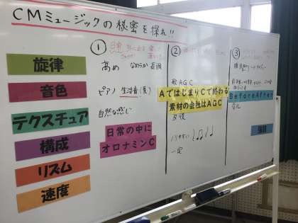 38学級の音楽です。3年生は、学区にできた豊田市博物館のCMミュージックづくりに挑戦しています。