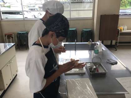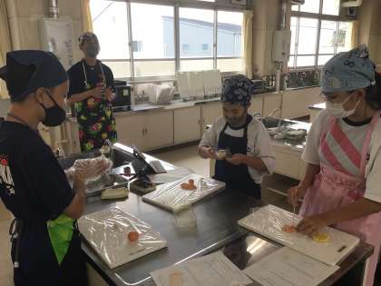 1・2・3・4・5・6学級の家庭科です。和菓子の「練り切り」を作っています。