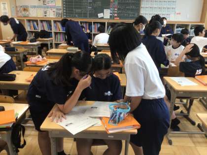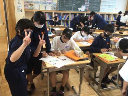 16学級の数学です。文章問題を友達と相談しながら考えています。