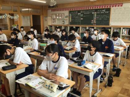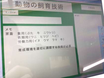 21学級の技術です。授業内容を学習用タブレットに記録しています。