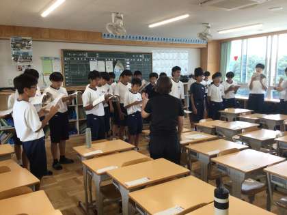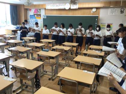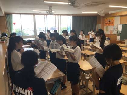 帰りの時間を活用し、3年生は、パートごとに学年合唱「大地讃頌」の練習をしています。