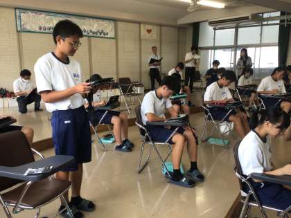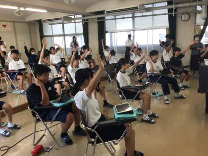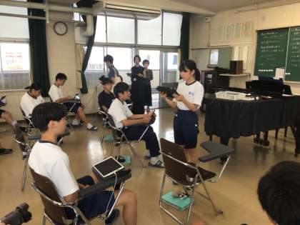 34学級の音楽です。校内や他校の先生が参観する研究授業を行っています。