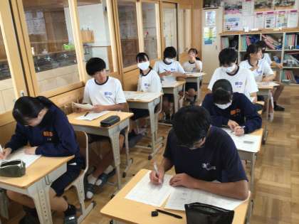 31学級の社会です。明日の学習診断テストに向けて、過去問に取り組んでいます。