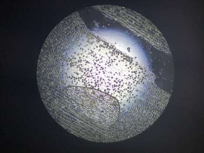 27学級の理科です。生徒が顕微鏡で見つけた植物の細胞や微生物です。
