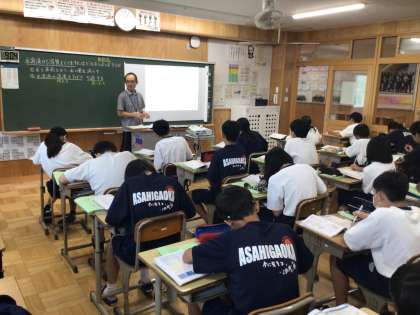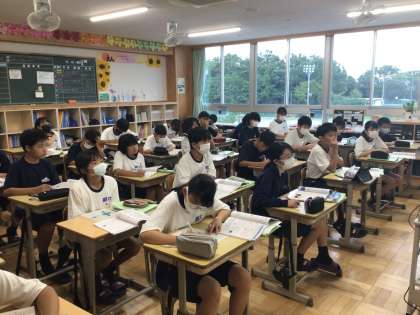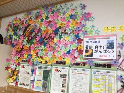14学級です。クラスの仲間に伝える「ありがとう」の花が満開です。授業は理科です。