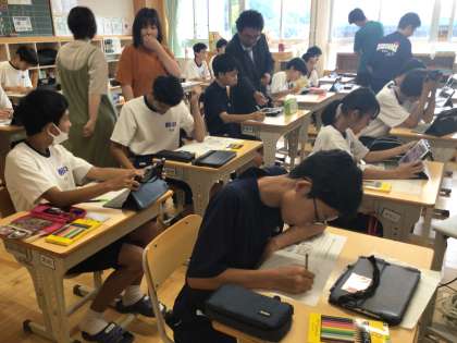 1・2・3・4・5・6学級の書写です。書画講習会に向けて、好きな言葉と絵を考えています。