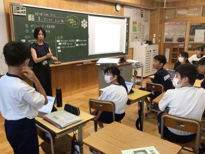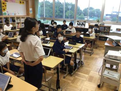 14学級です。本日の話し合い活動のテーマは、「夏に行くなら山?それとも海?」です。