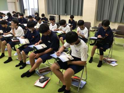 13学級の音楽です。浜辺の歌を聴きながら、歌詞の言葉を確認しています。