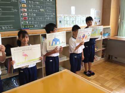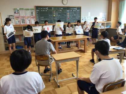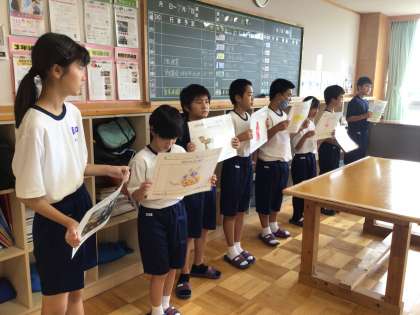 7/17(水)授業の様子1 公開日 2024/07/17 更新日 2024/07/17 輝く朝中生! 1・2・3・4・5・6学級の英語です。1年生がオリジナルで作った英語の物語を発表しています。 特別支援学級