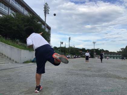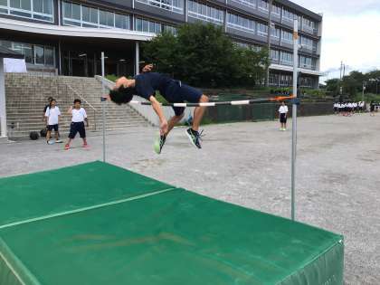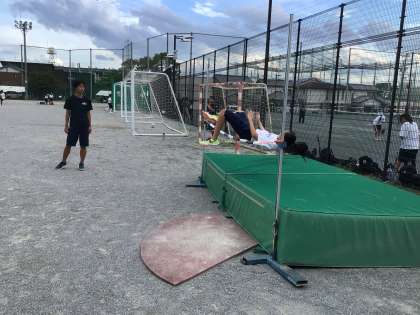 陸上部です。走り高跳びと砲丸投げの練習をしています。