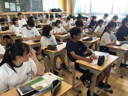 7/18(木)授業の様子6 公開日 2024/07/18 更新日 2024/07/18 輝く朝中生! 31学級の保健体育です。エイズの予防について、重要事項をスカイメニューのノートにまとめています。 3年