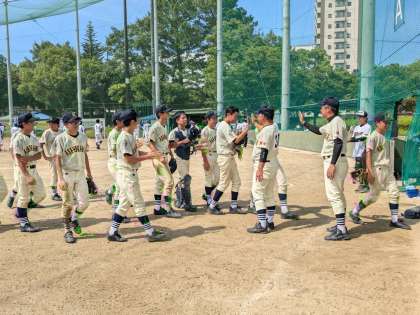 7/21(日)夏の大会9 公開日 2024/07/21 更新日 2024/07/21 輝く朝中生! 野球部です。 西三河大会 1回戦 対 幸田町立南部中学校 4-2 勝利 3名の継投で守り勝ちました。センターからのバックホーム送球で相手ランナーをアウトにするナイスプレーも光りました。 2回戦へ進出です。 部活動