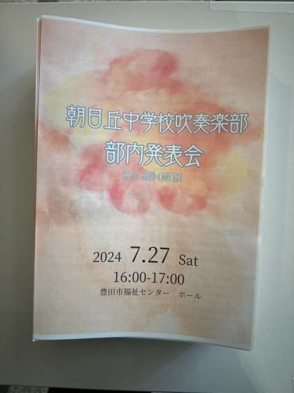 吹奏楽部が、豊田市福祉センターで部内発表会を実施します。16時開演です。