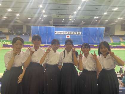 8/25(日)部活動大会結果2 公開日 2024/08/25 更新日 2024/08/25 輝く朝中生! 弓道部です。 中日本弓道近的選手権 朝日丘Aチーム 1中 朝日丘Bチーム 3中 予選敗退ですが、全力を尽くしました。今後の成長が楽しみです。 部活動