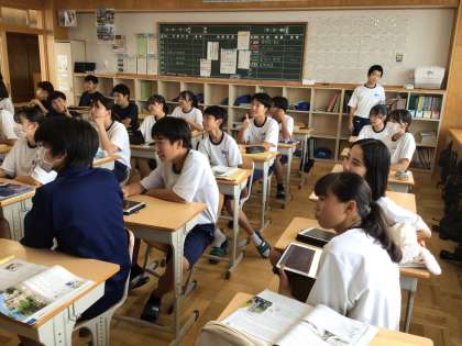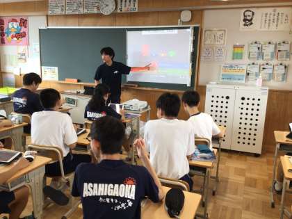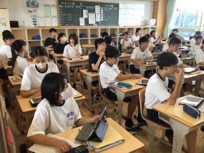 36学級の英語です。学習用タブレットを使って、クイズ形式で英語表現を学んでいます。