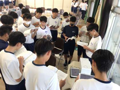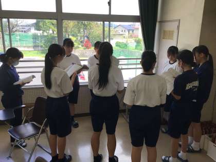 31学級の音楽です。パートごとに合唱曲「信じる」の練習をしています。