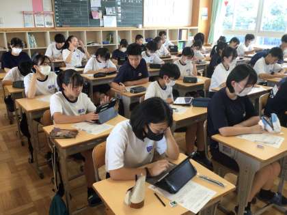 27学級の総合学習です。中学卒業後の進路について考えています。