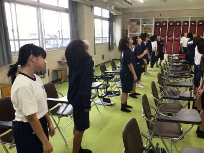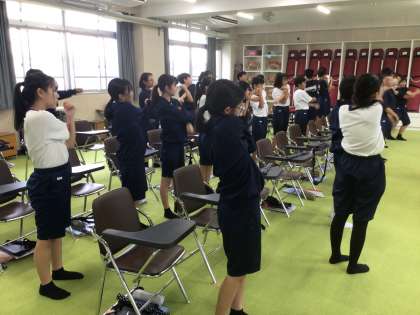14学級の音楽です。合唱前の準備運動をしています。いい声が出ています。