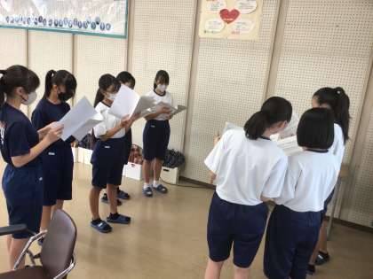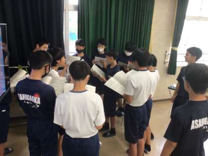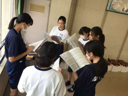 23学級の音楽です。パートごとに合唱曲「空駆ける天馬」の練習をしています。