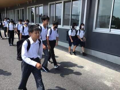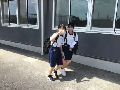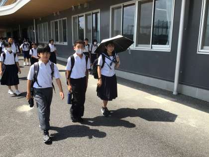 テストが終わり、みんな笑顔で下校していきます。夏休みが明けて1週間が過ぎました。週末はゆっくり過ごしてください。