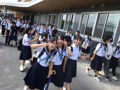 テストが終わり、みんな笑顔で下校していきます。夏休みが明けて1週間が過ぎました。週末はゆっくり過ごしてください。