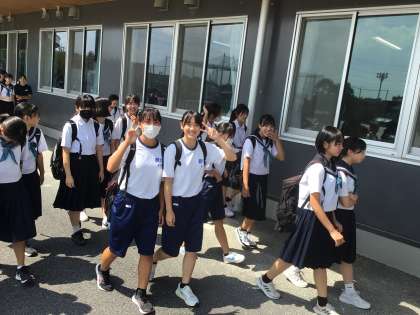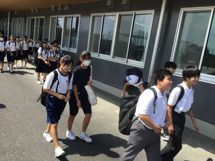 テストが終わり、みんな笑顔で下校していきます。夏休みが明けて1週間が過ぎました。週末はゆっくり過ごしてください。