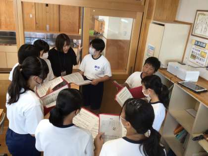 午後の休み時間では、2年生の教室からも歌声が響いていました。昨年の経験を生かし、パート練習をしています。写真は21学級の様子です。