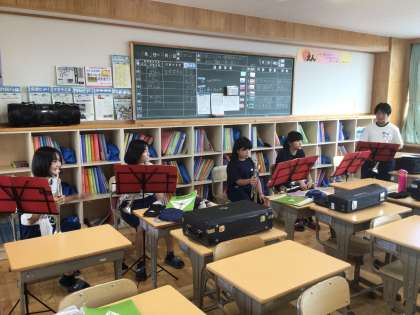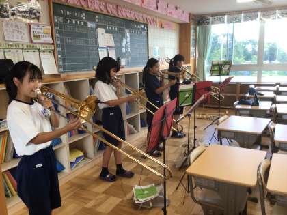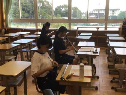 吹奏楽部です。1・2年生が主体となり、がんばっています。