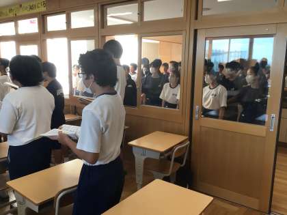 9/13(金)合唱練習 公開日 2024/09/13 更新日 2024/09/13 輝く朝中生! 帰りの合唱練習をしている3年生の様子を1年生が見学に来ました。1年生は、来週からの練習に生かしたいですね。 1年 3年
