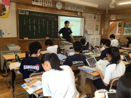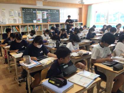 23学級の社会です。学習課題は「三大改革の最後の一人は何をしたのか知り、他のリーダーと比較しよう」です。学んだことを学習用タブレットにまとめています。