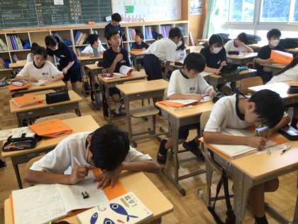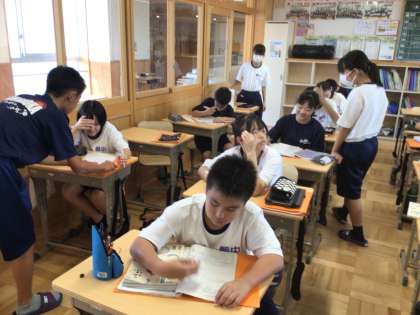 17学級の数学です。友達と協力して、方程式の問題を解いています。