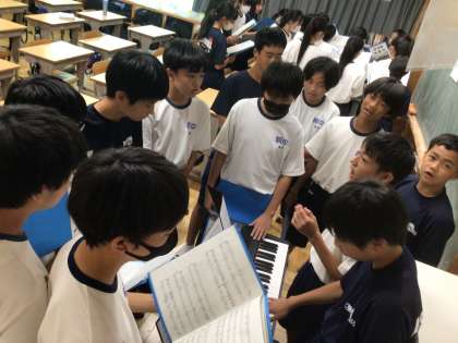 25学級です。帰りの会の時間を使い、学級で協力して合唱練習をしています。