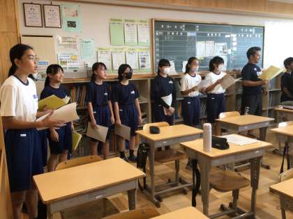 24学級です。帰りの会の時間を使い、学級で協力して合唱練習をしています。