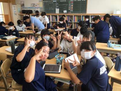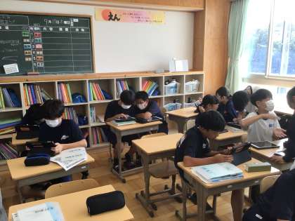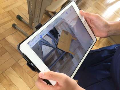 9/19(木)授業の様子3 公開日 2024/09/19 更新日 2024/09/19 輝く朝中生! 16学級の技術です。AR技術を使い、学習用タブレット上で作成したものを現実空間に映し出し、大きさなどをイメージしています。 1年