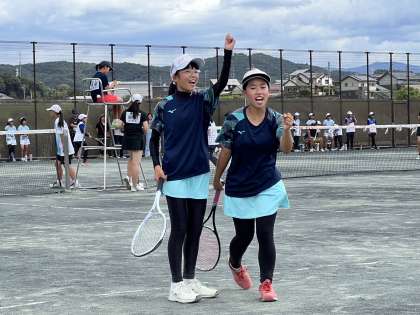 9/21(土)部活動大会結果4 公開日 2024/09/21 更新日 2024/09/21 輝く朝中生! 女子ソフトテニス部です。 豊田市新人戦 団体戦 予選リーグ 対 末野原中 3-0 勝利 対 高橋中 3-0 勝利 決勝トーナメント 1回戦 対 猿投台中 2-0 勝利 個人戦 2ペアが予選トーナメントを勝ち上がりました。 団体戦、個人戦とも、来週の決勝トーナメントに進出しました。引き続き、応援をよろしくお願いします。