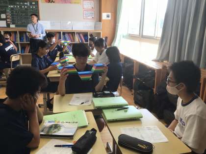 15学級の理科です。断層のずれについて学習しています。