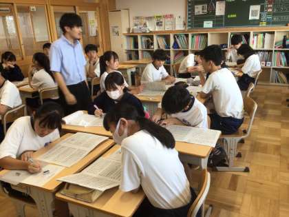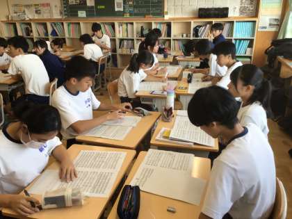 33学級です。合唱曲の曲想について話し合っています。
