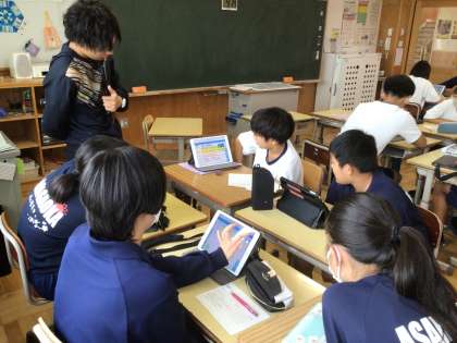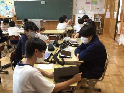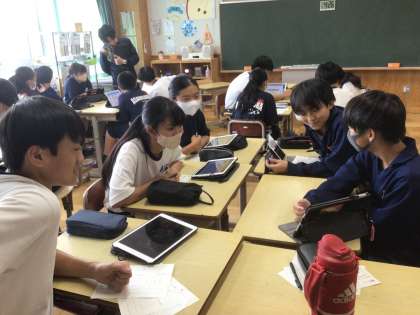 13学級です。夏休みに取り組んだMy SDGsをグループで発表しています。