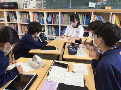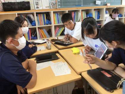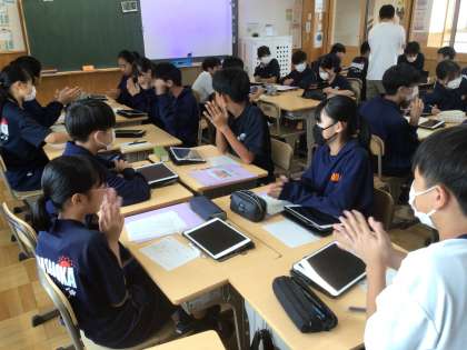 16学級です。夏休みに取り組んだMy SDGsをグループで発表しています。