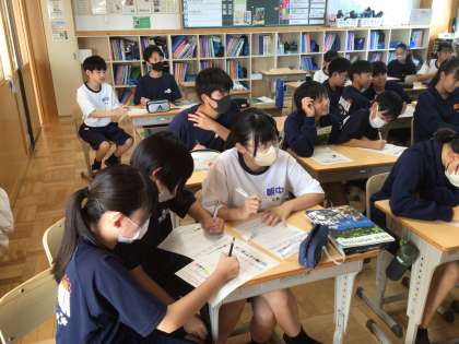 11学級の英語です。今度、英語の授業に参加する外国人ゲストの紹介movieを見ています。