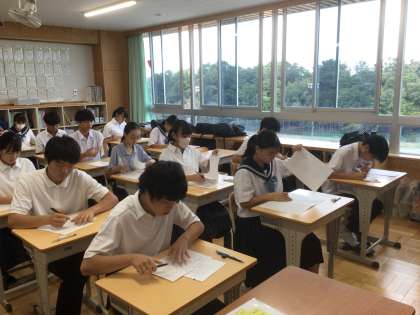 本日、3年生は、学習診断テストです。とても集中してテストに取り組んでいます。
