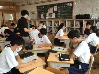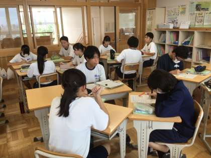 32学級の理科です。生物の学習をしています。たくさん意見が出ています。