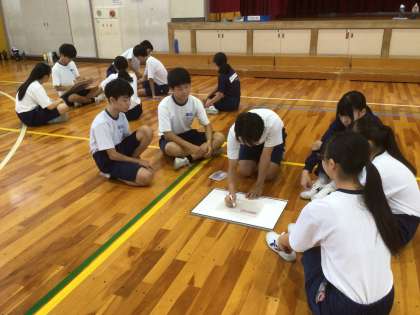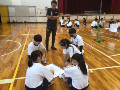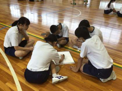10/9(水)授業の様子1 公開日 2024/10/09 更新日 2024/10/09 輝く朝中生! 31・32学級の体育です。ソフトバレーボールに取り組んでいます。チームで、目指すべきプレーについて話し合っています。 3年