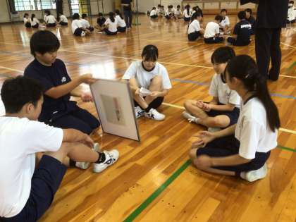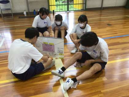 10/9(水)授業の様子2 公開日 2024/10/09 更新日 2024/10/09 輝く朝中生! 31・32学級の体育です。ソフトバレーボールに取り組んでいます。チームで、目指すべきプレーについて話し合っています。 3年