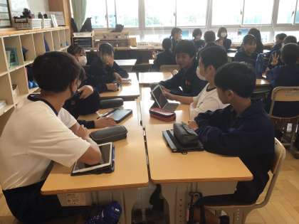 10/9(水)授業の様子8 公開日 2024/10/09 更新日 2024/10/09 輝く朝中生! 11学級の理科です。豊田の大地に秘められた歴史を解き明かすために、グループを決めて探究します。 1年