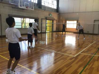 1・2・3・4・5・6学級の体育です。バドミントンに取り組んでいます。