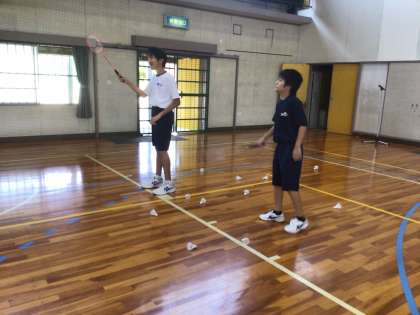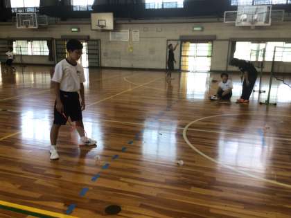 1・2・3・4・5・6学級の体育です。バドミントンに取り組んでいます。