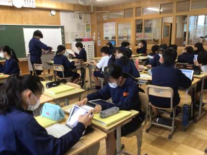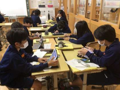 14学級の英語です。今度授業に参加する外国人ゲストに向けた発表準備のため、ALTの先生に尋ねたり、原稿を作ったりしています。