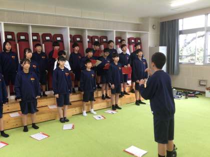 16学級の音楽です。仲間と気持ちを合わせて合唱しています。