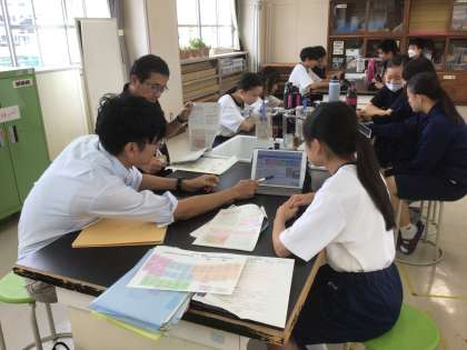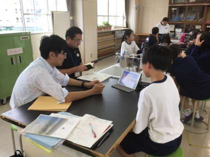 17学級の理科です。博物館の学芸員の方に自分の考えや疑問を尋ねています。